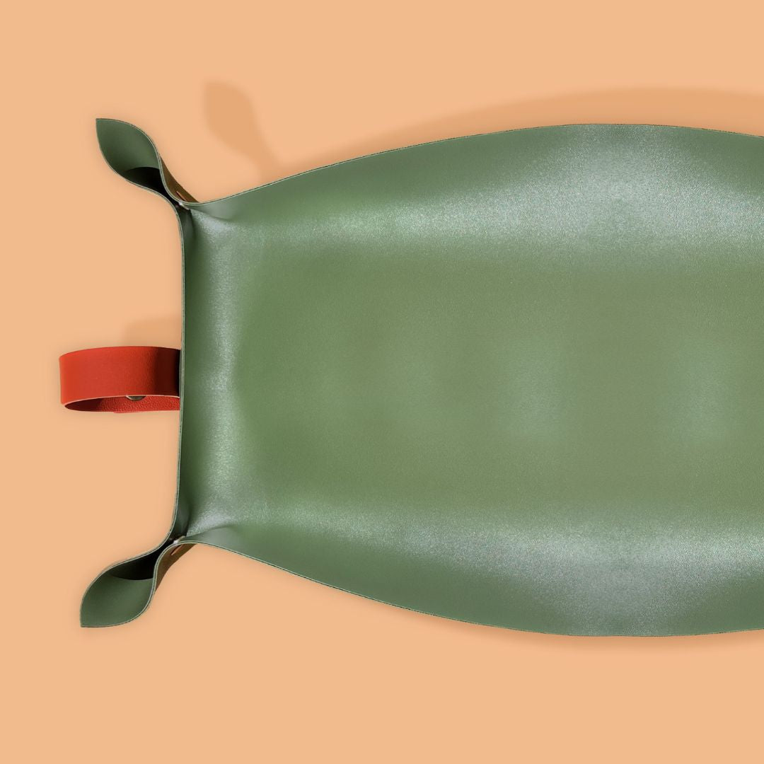 Apron: Made out of recycled canvas with rust-proof brass. It is water resistant and machine washable.