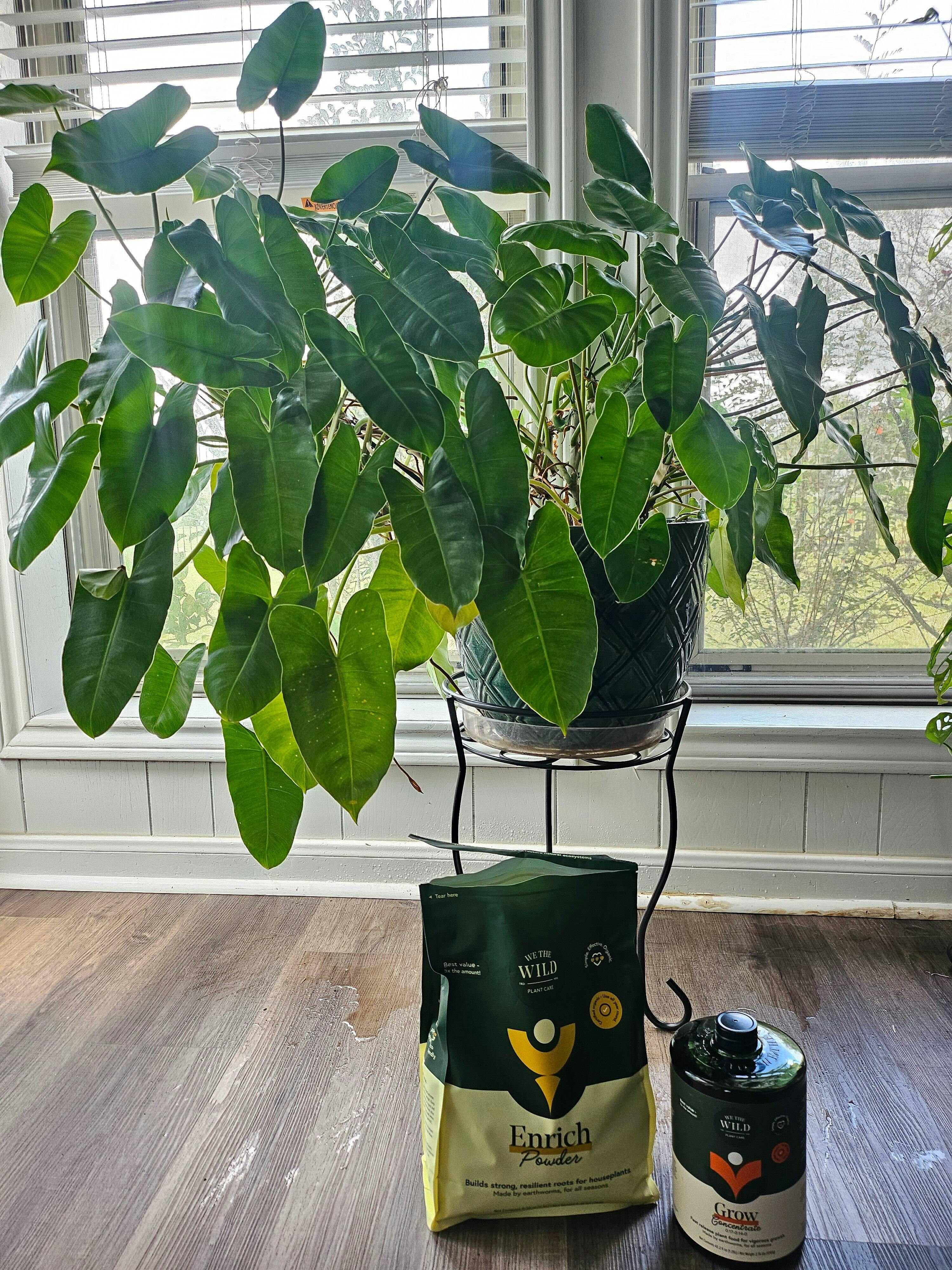 Our odor-free Enrich Powder is made from a proprietary worm-casting blend that not only delivers nutrients and beneficial fungi to the soil, but gently nourishes your plant all year round. Just sprinkle it on your your soil, or mix through soil when repotting. Our Grow Concentrate is a fast acting plant food designed to encourage plants to push out new shoots, new leaves and strong stems. Simply squirt it into your water, everytime you water.